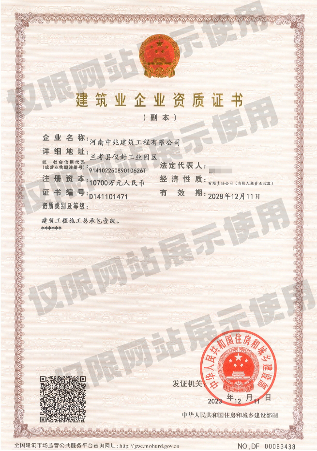 • 河南中兆建筑工程有限公司成立于2013年,公司注冊資本10700萬元,凈資產(chǎn)總額近1.9億元。公司目前具有“建筑工程、市政公用工程、鋼結(jié)構(gòu)工程、建筑機(jī)電安裝工程、建筑裝修裝飾工程、地基與基礎(chǔ)工程、消防設(shè)施工程、壓力管道”等17個資質(zhì)。現(xiàn)有從業(yè)人員2150人,具有中高級各類專業(yè)技術(shù)職稱管理人員達(dá)120人,壹級、貳級建造師約90余人;主要施工設(shè)備300多臺(套)。通過了ISO9001質(zhì)量管理體系認(rèn)證、職業(yè)健康安全管理體系認(rèn)證、環(huán)境管理體系認(rèn)證,并多次獲得省級“AAA”信用企業(yè)、“重合同守信用”、“先進(jìn)建筑企業(yè)...
